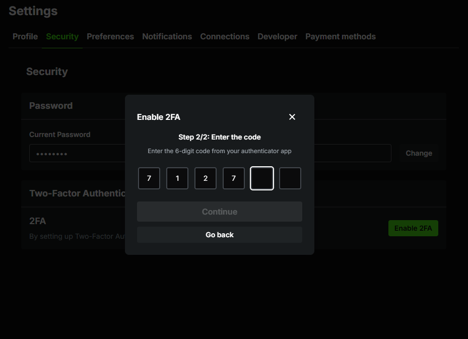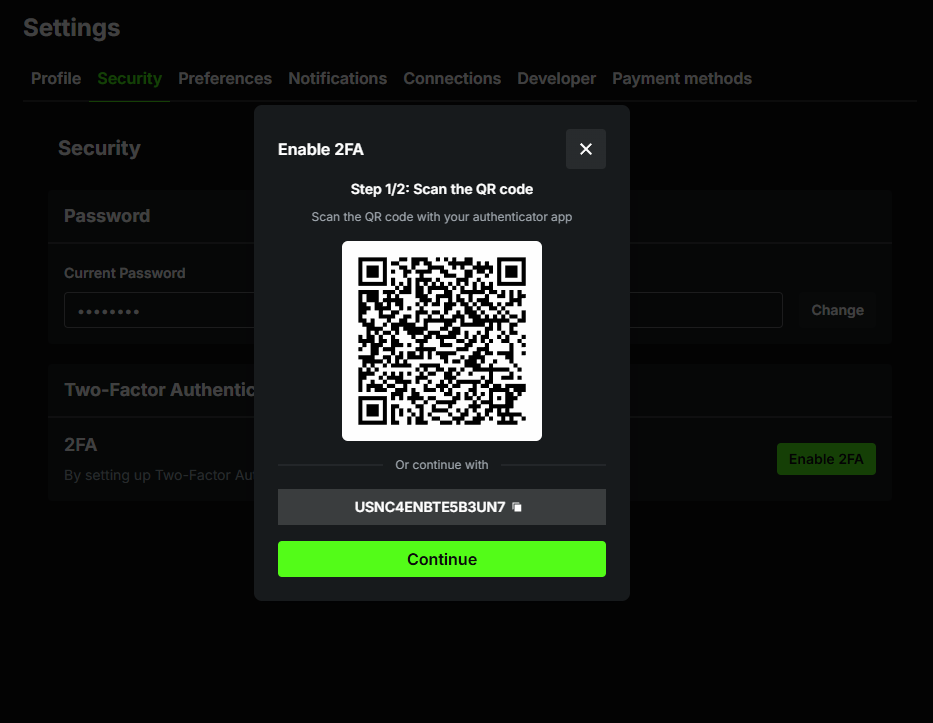 3. Click the "Enable 2FA" button.